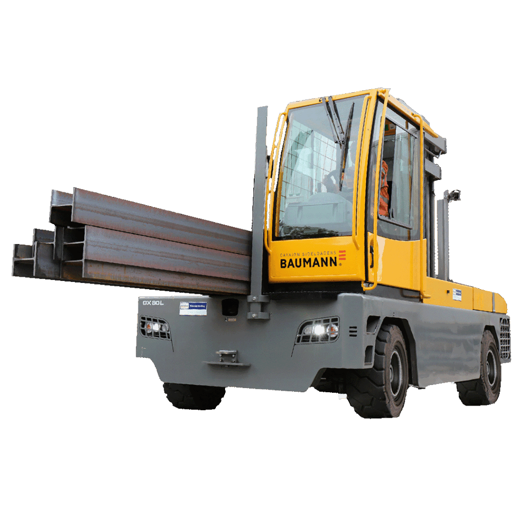 The Baumann GX Series Sideloader is a high-performance machine designed for the safe and efficient handling of long and heavy loads. With advanced outreach technology, rugged construction, and market-leading operator ergonomics, the GX Series delivers precision handling and excellent productivity. It is engineered to operate reliably in demanding environments such as steel, aluminium, and timber industries.