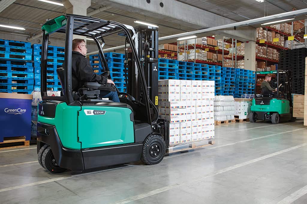 With its forks extending from the front without any reach mechanism or protruding supports, the forklift relies on its own weight combined with the additional counterweight to remain stable. Its versatile design makes it popular in various industrial environments, from warehouses to distribution centres.